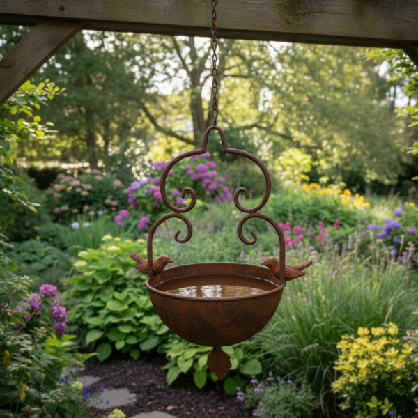 Antique Style Haning Bird Bath Feeder in Rust (MOQ4/PPU)