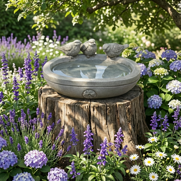 3 Birds Sat on a Stone Look Bird Bath (MOQ4/PPU)
