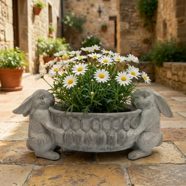 2 Bunnys Holding a Planter (MOQ4/PPU)