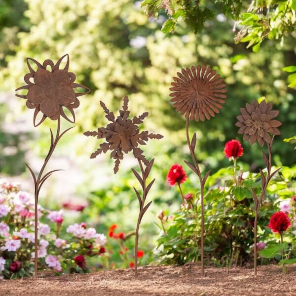 Set of 4 Large Assorted Flower Stakes (MOQ 1/PPS4)