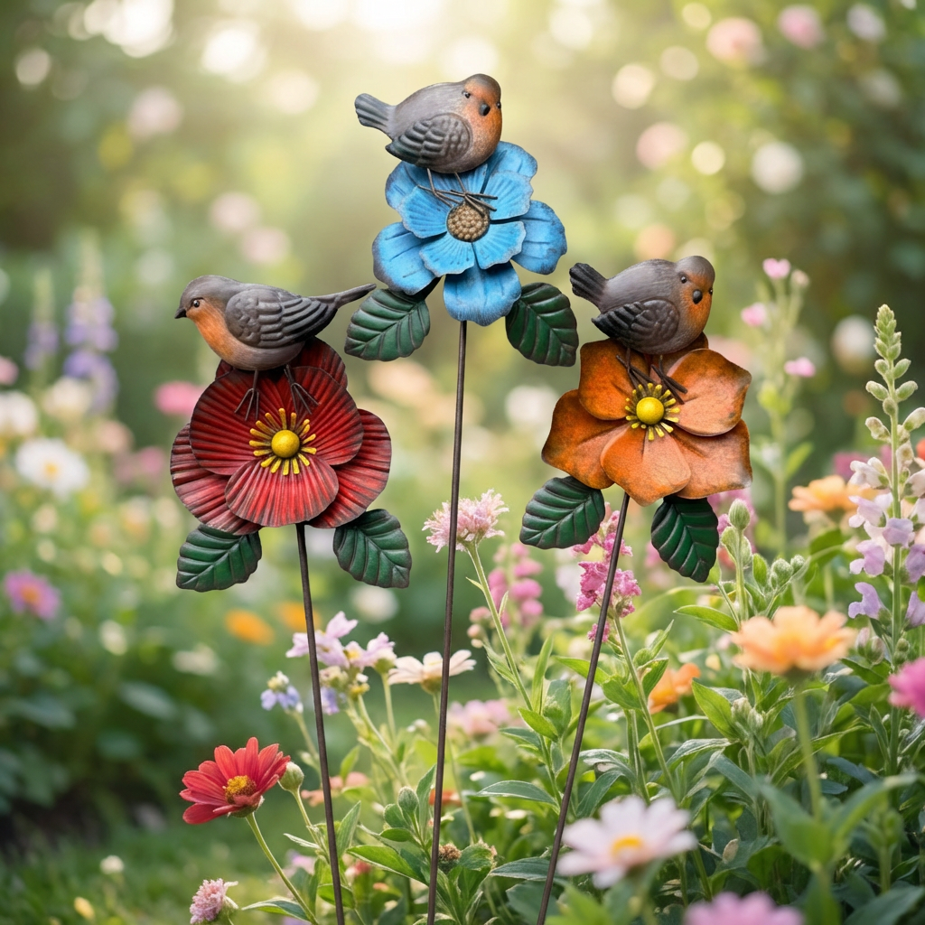 Brighten up any garden bed or pot with this charming assorted set of bird and flower stakes. Available in vibrant orange, red, and blue, each piece adds a cheerful pop of color and a touch of whimsy to outdoor spaces. Perfect for creating a lively, nature‑inspired display, these durable decorative stakes are an easy way to enhance your garden’s personality all year round.