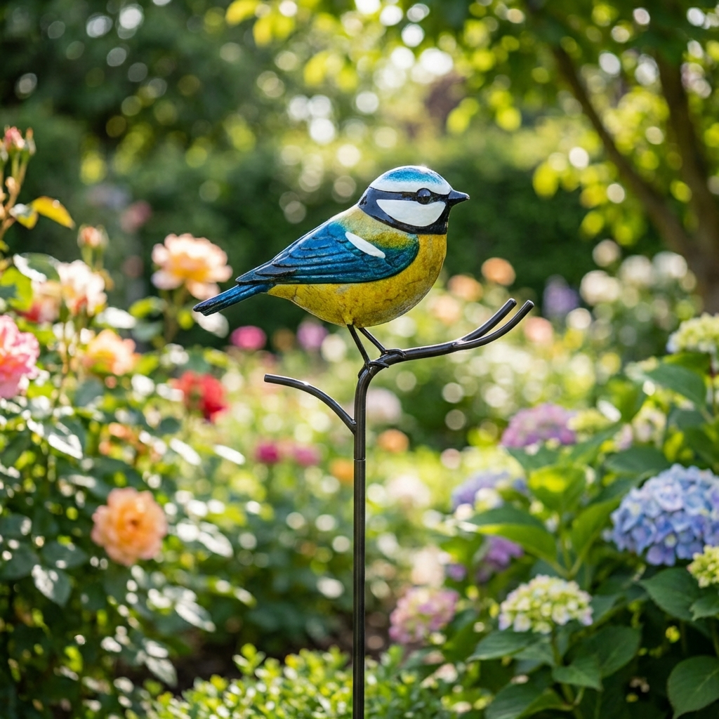 A cheerful pop of colour for any garden, this metal blue tit stake brings a lively, nature‑inspired touch to pots, beds, and pathways. Its vibrant hand‑painted plumage and graceful branch perch create a charming focal point, while the sturdy metal stake keeps it standing proud through every season. A sweet, uplifting accent that brightens the garden at a glance.