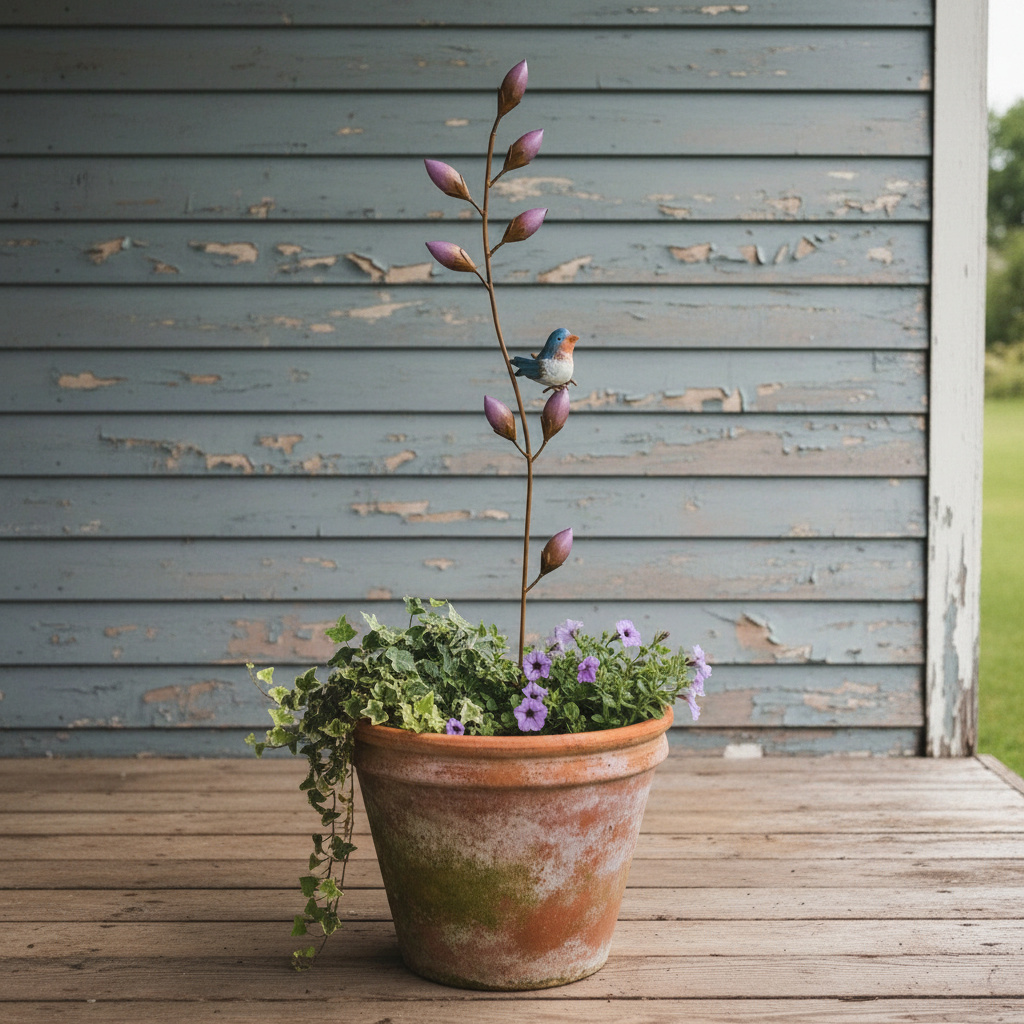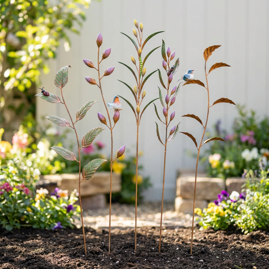 A charming little woodland touch for the garden, this set of five Forest Folk metal stakes brings playful character to pots, beds, and borders. Each piece features delicate leaves, budding stems, and sweet perched birds, adding colour, height, and a hint of storybook whimsy to any outdoor space. Durable, weather‑ready, and full of personality, they create an instant focal point wherever they’re placed.