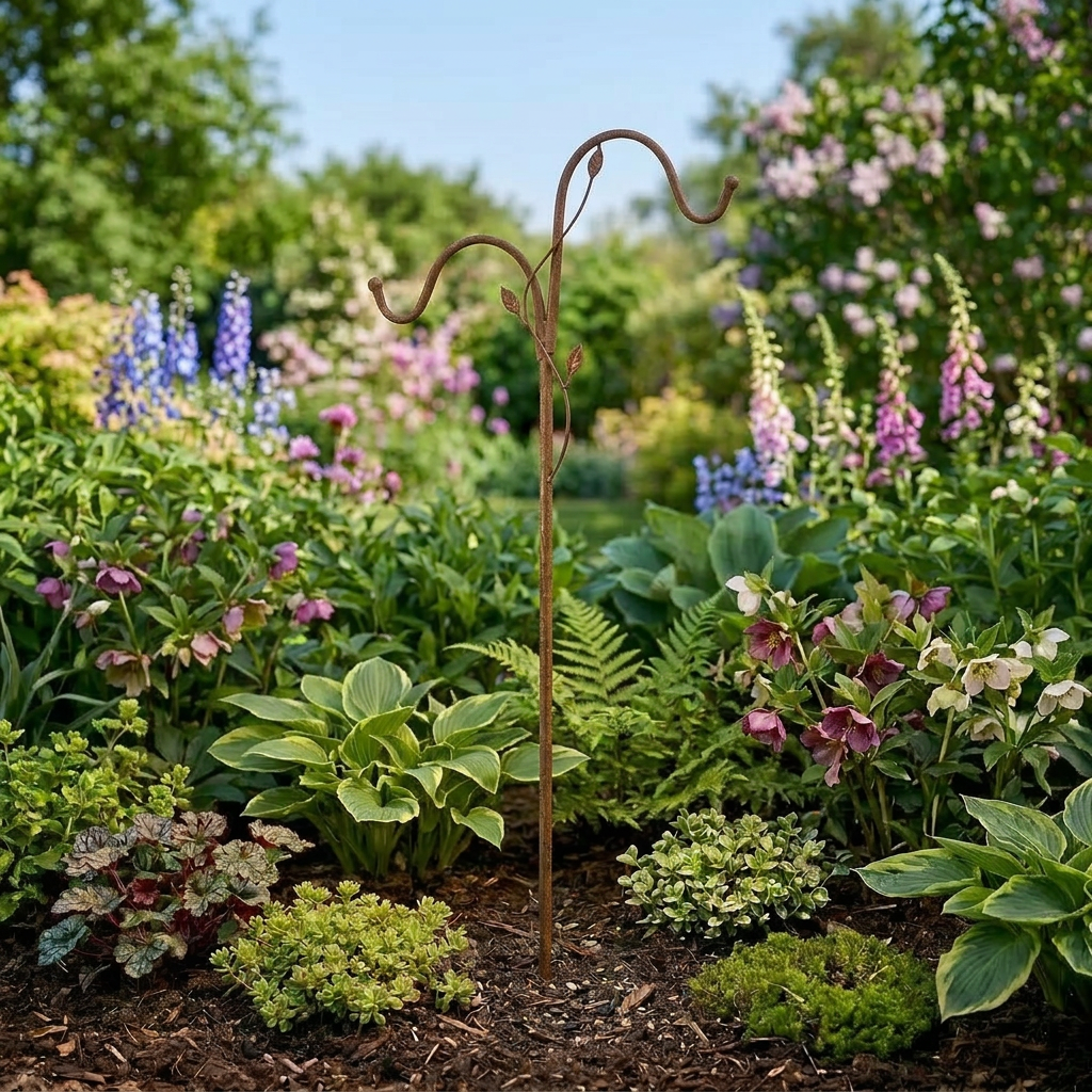 Elevate your garden décor with this Ornate Double‑Hooked Garden Stake, designed to bring height, elegance, and versatility to any outdoor space. The sculpted leaf and vine detailing adds a touch of artistry, while the twin hooks provide the perfect place to display your favourite hanging accents.