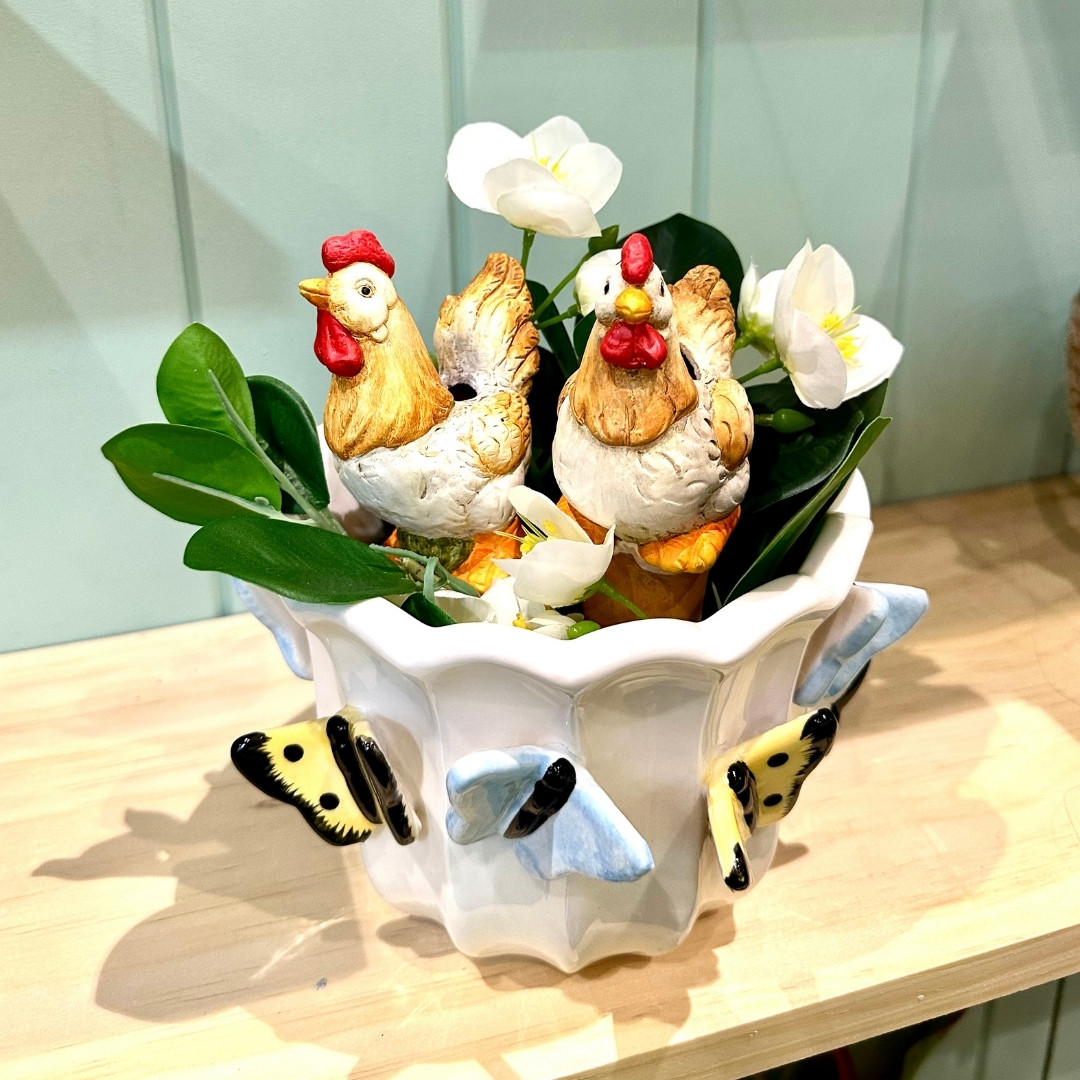 Add a charming touch to your garden with this set of Clay Rooster and Chicken Watering Spikes. Designed to look like adorable farm animals, these spikes help water your plants efficiently by slowly releasing water directly into the soil. Simply place them in your plant pots or garden beds, and enjoy the whimsical yet practical design that keeps your plants hydrated with ease. Perfect for both decoration and function, these watering spikes bring a rustic, country feel to your outdoor space.